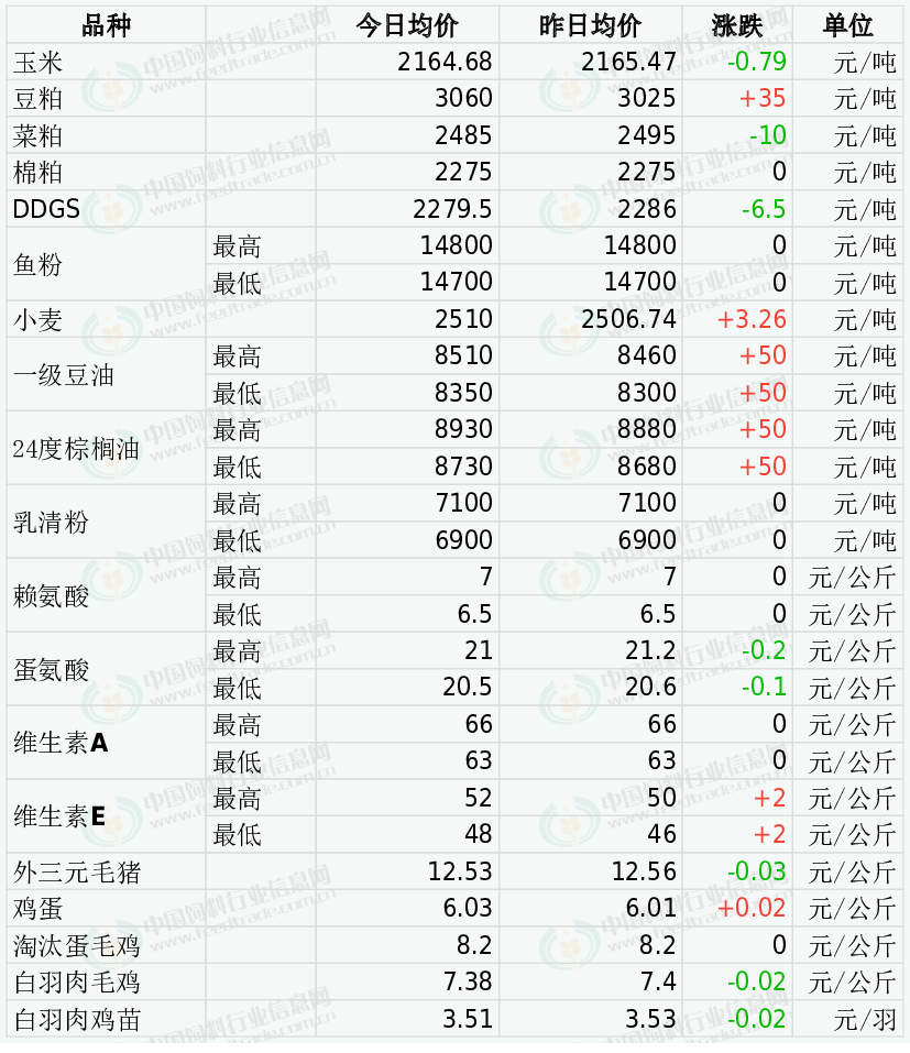 31日全国均价总体跌势放缓,局部地区略有震荡,波动地区减少总体涨少跌多。国内主产区新粮不断上市供应,潮粮存放及加工受限制,基层购销活跃度不高,饲企后市观望心态较浓,深加工企业采购多随用随采,在缺乏明显利多的情况下行情偏弱运行。预判11月份期间大多数时候产区玉米交易价格总体继续偏弱走势为主的可能性更大,11月份月度均价环比继续下跌的几率更高。需要提醒的是,受采收季节部分区域市场降雨不断导致玉米收割进度缓慢,晾晒及储存难度提高,玉米霉变率提高及毒素含量提高,或导致10月下旬11月份期间玉米交易价格出现一波阶段性上涨行情,低库存企业须高度关注市场动态。